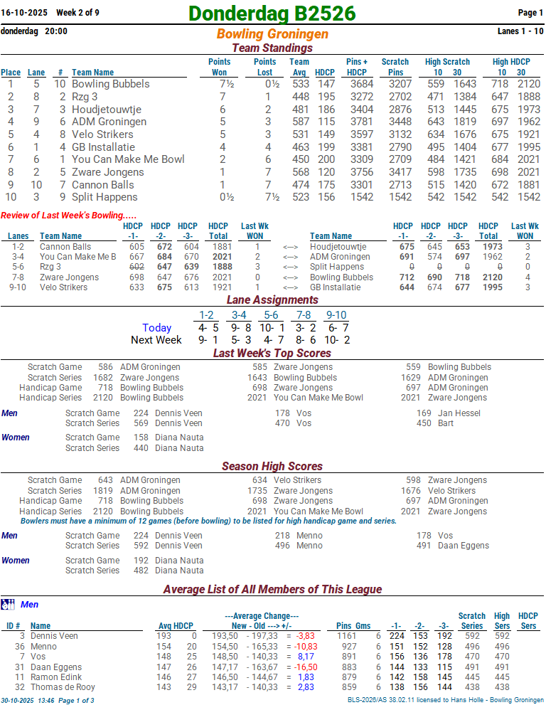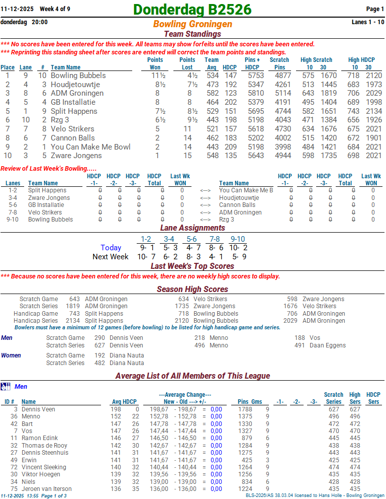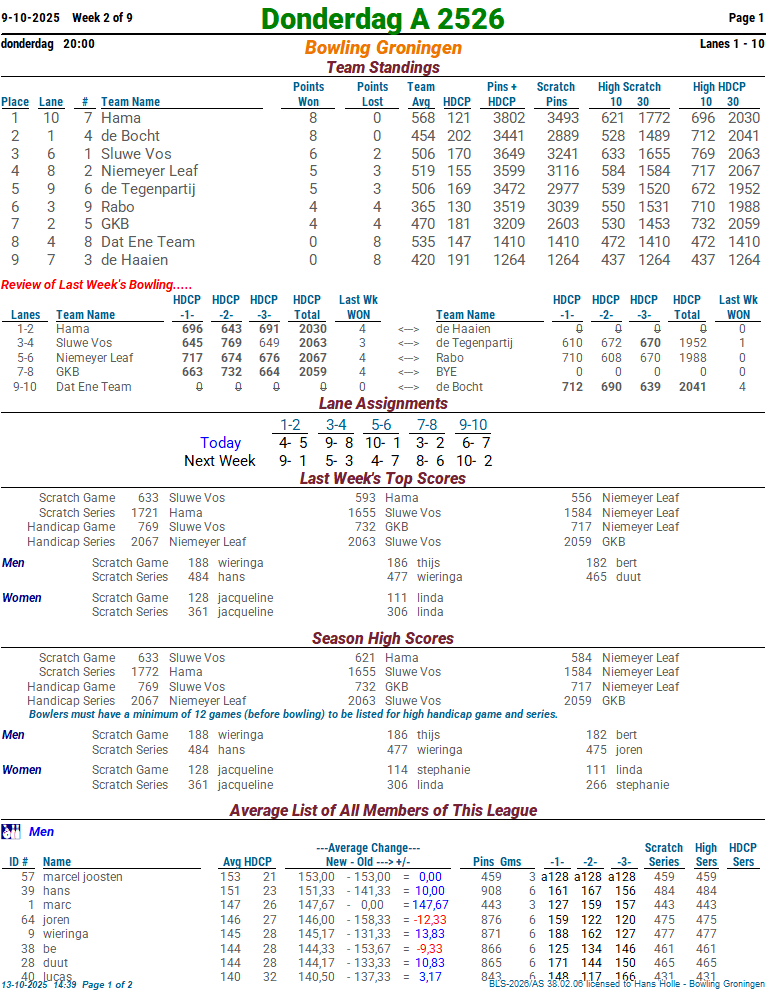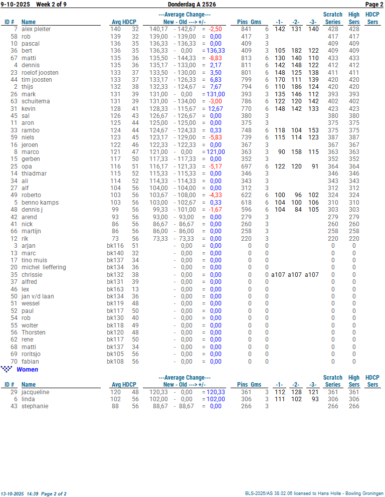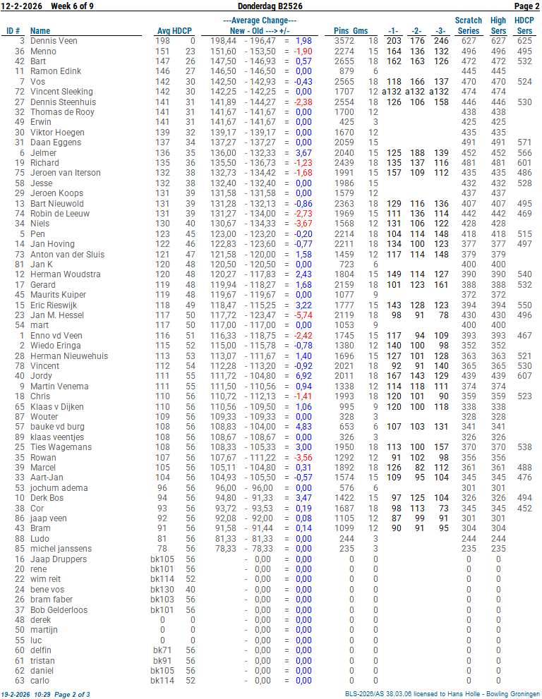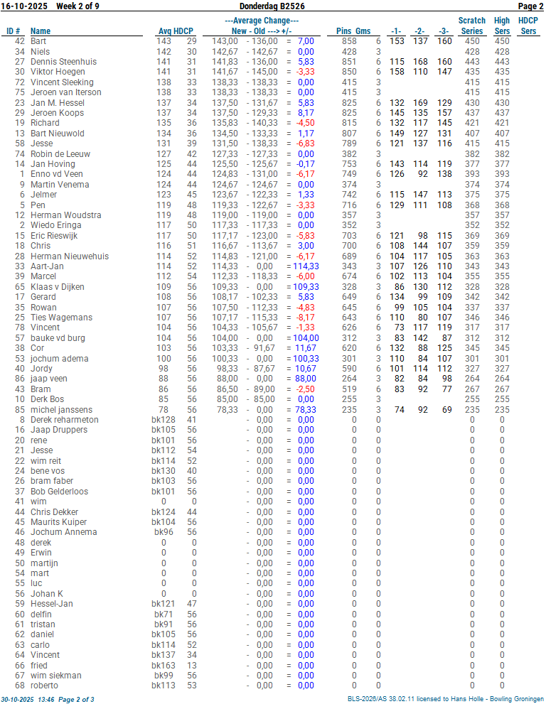 Hieronder vindt u alle uitslagen van onze bedrijven competities. Nb. de scores online zijn door inhaal wedstrijden niet altijd “up to date” , indien uw tegenstander nog niet heeft gebowlt, staat de score voorlopig op 4-0! dit wil niet zeggen dat dit definitief is.